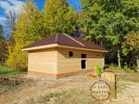 Сруб изготовлен из естественного бруса сечением 150 на 150 мм. Сборка осуществляется на деревянные нагеля, с угловым соединением "шип-паз"