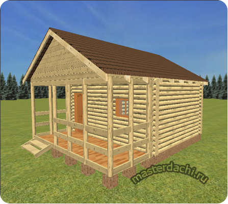 Лаконичный проект бани 4 на 5 с террасой – это гармоничная комбинация солидного сруба и легкой открытой террасы под одной крышей. Собственно банный домик состоит из трех частей: