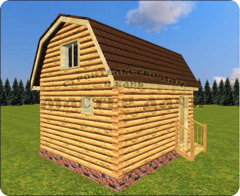 Чтобы на участке появилась баня 4х5 с мансардой, бригаде строителей компании достаточно 8-10 дней. Строительство этой бани проводится по типовой схеме: заливается ленточный фундамент, собирается надежный сруб «в лапу» из выбранного дерева (сосна, липа или осина), возводится мансардная крыша, устанавливаются деревянные окна и двери.