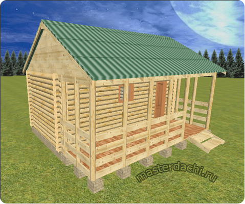 Открытая терраса 2 на 6, возводимая на облегченном столбчатом фундаменте, выглядит достаточно изящно и невесомо, что делает весь банный домик более аккуратным и привлекательным внешне.