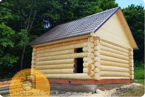 Строительство бани под усадку из бревна крупного диаметра в Альметьевском районе.