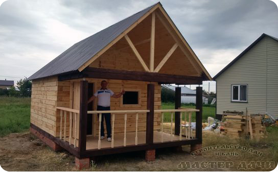 Завершено строительство бани из бруса с террасой в п. Борисоглебское г. Казань. Общие размеры застройки 4 на 6 метров - 24 м2. Баня 4 на 4 из бруса разделена 2 перегородками на 3 отдела, комната отдыха, моечная (душевая) и парная. Терраса открытая с декором до половины балясинами. Баня из бруса с террасой построена за 7 дней (без электрики и пропитки антисептиками).
