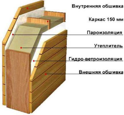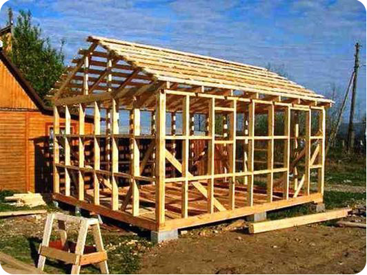 Эта технология, является более дешевым методом бани что бы построить под ключ. Готовить крепкий и большой фундамент здесь не нужно, так как конструкция получается очень легкой. Усадку то же не нужно ждать, отделку можно производить сразу после его возведения. Основные столбы каркасной бани устанавливаются из брусков различного сечения, по углам. Скрепление их между собой, производится брусками 50х100 мм либо 50х150 мм, в зависимости от основных столбов каркаса. С наружной стороны его обшивают фанерой, осб, евро вагонкой либо другими отделочными материалами. Стены наполняются минеральной ватой по толщине, укладывая вплотную и не оставляя зазоры. С наружной стороны перед отделкой, крепится на степлер ветроизоляция. С внутренней стороны, обшивают теплозащитными материалами и пароизоляцией, далее обшивают евро вагонкой.