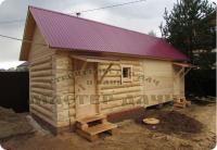 Покрытая металлочерепицей крыша для бани будет иметь очень привлекательный вид, особенно хорошо смотрятся бани из сосны, покрытые таким материалом.