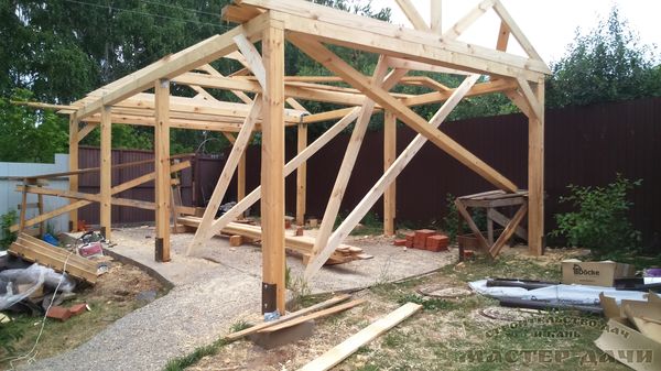 Строительство деревянного навеса для авто производится по следующей схеме: