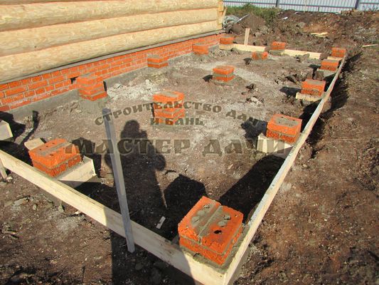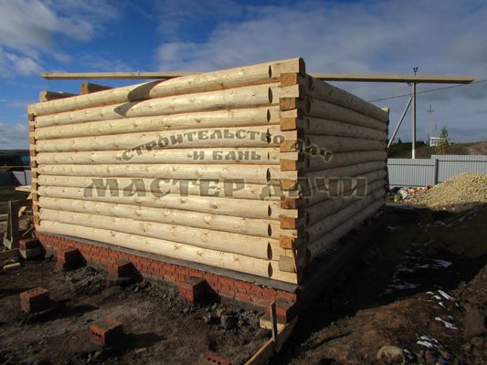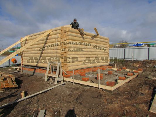Обязательным условием при строительстве является использование цоколя из красного цокольного кирпича. Его использование предотвращает попадание влаги через фундамент, а добавление рубероида после цоколя в два раза увеличивает процесс задержания загнивания первых венцов сруба, будь что из бревна или бруса.
