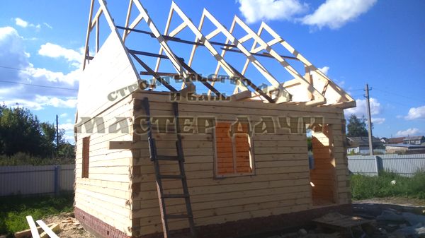 Крыша разделяется на два вида: двускатную и мансардную (двускатную, ломанную). Конструкция крыши состоит из стропил и подстропильных брусков размером 50х150 мм. Обрешеткой служит доска 1-2 сорта 25х150 мм. Для зимних дачных домов используется вентилируемая крыша. Материал для кровли используется профнастил или металлочерепица, по желанию заказчика. Мансардная крыша, утепляется парогидроизоляцией и минеральной ватой(при необходимости). Утепление не входит в базовую комплектацию проектов дачи с мансардой.